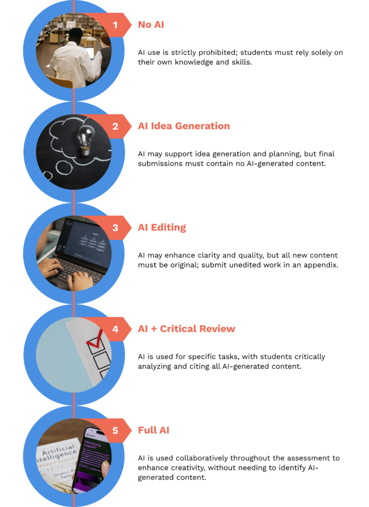 Figure 1. Five Levels of the AI Assessment Scale (AIAS), adapted from Perkins et al. (2023).